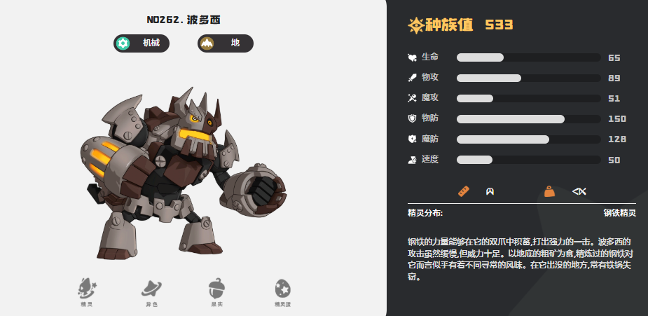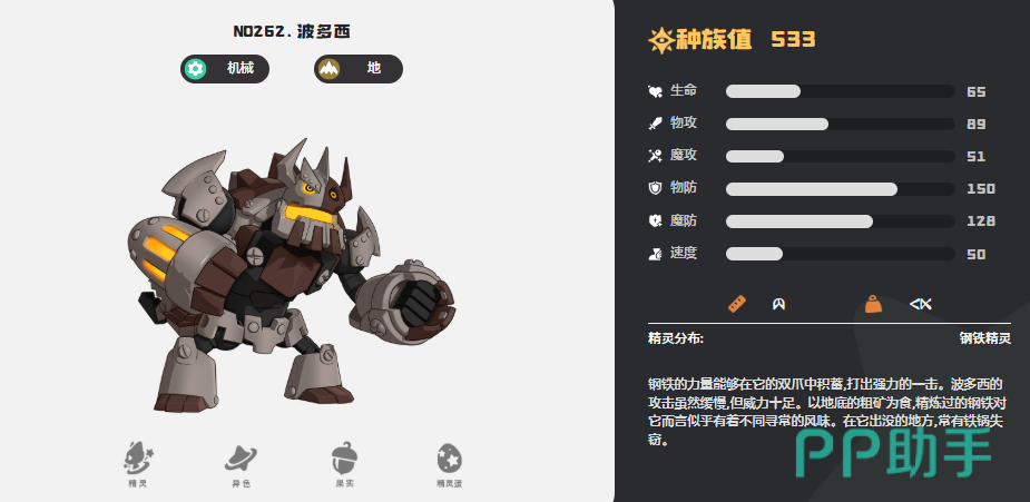 而在大家比较关心的物防属性数值当中,其实大家可以多关注一下第一的波多西,这个精灵当前在此类数值上面已经做到的170点的效果,而且在当前的效果当中如果波尔西的话,其实在机械系的配队或者是地系的配队的当中都可以用得上,当然他本身因为物理防御高,所以也显示出了很明显的坦克定位效果,这里根据波多西的特性,大家可以在为他组成阵容之后,保证每一次己方的精灵有释放防御技能的时候,就让防御技能释放出来的威力增加10%的数值,但是这里一般释放的技能效果要是波多西自身的元素同类,才可以触发这个定向精炼的特性,此时也才可以用好他的防御效果。