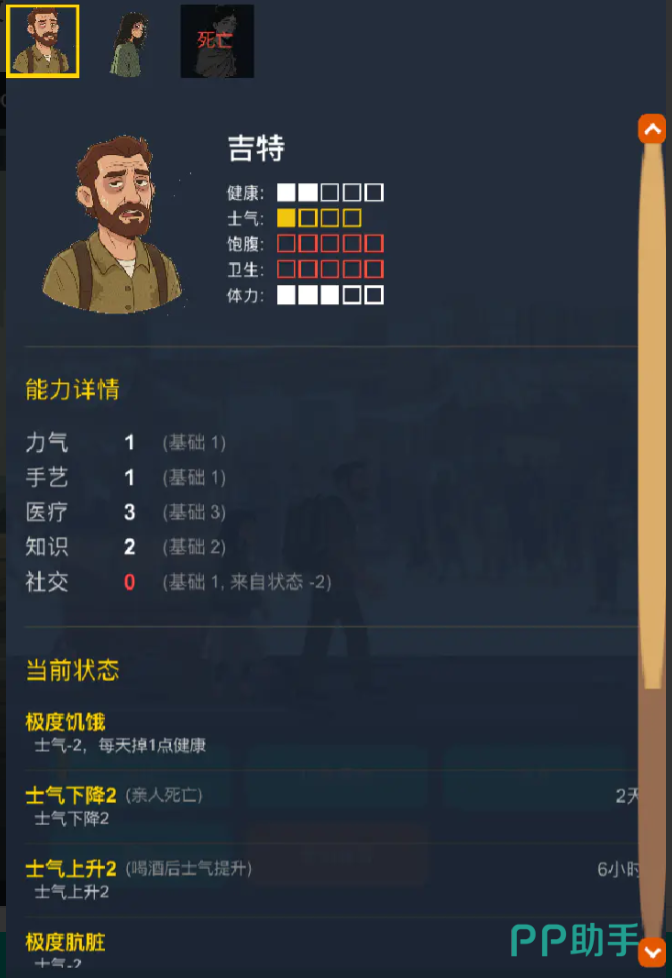 逃往南方依靠随机事件链给玩家赋予了满意的意外游戏体验。对地图节点深度分析之后,玩家就会体会到处处是战争倒影的荒凉之美,战术养成上限与全局探索进度深度绑定,赋予生存过程很高的沉浸感。每一项果腹食物或者防御工具的选择都是策略性价比的体现,不同性格的格斗家在面对自私和善良的选择题时,需要准确权衡长远利益来冲破团队崩解的风险,保证在资源匮乏的僵持局中依靠稳健的共情能力决定胜负。