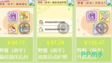 在完成基础操作认知后,需进一步构建理性消费框架。本作核心付费结构围绕四大模块展开:限时礼包、通行证(季票)、护照及活动限定礼包。其中,【野餐礼包】为性价比首选,全档位购买可获得远超售价的粉钻总量,是前期资源积累的关键支点。