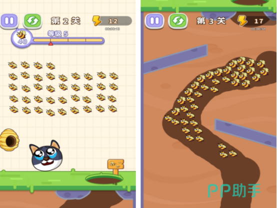 本作主打物理画线解谜机制。玩家需在每关地图中绘制路径,引导蜜蜂绕行或拦截其飞行轨迹,从而保护场景中的小狗角色免遭叮咬。关卡设计融合动物行为逻辑与几何空间思维,随着进度推进,蜜蜂数量、移动速度及障碍复杂度同步提升,考验策略规划与手眼协调能力,适合全年龄段用户尝试。