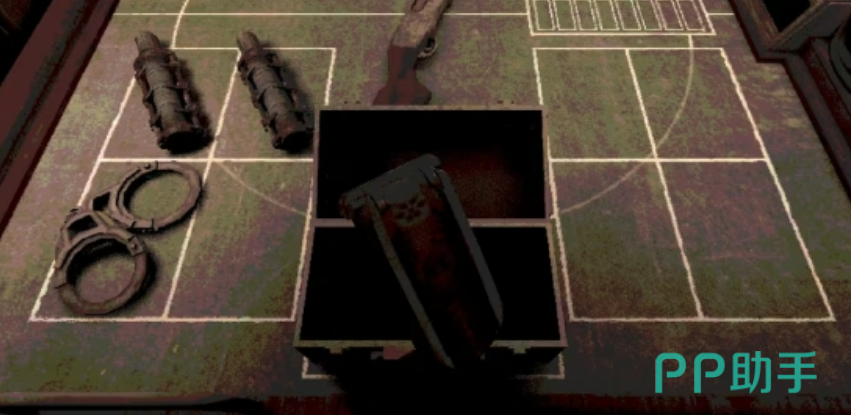 手锯:霰弹枪专属强化道具,触发后使本次射击造成2点伤害(无论实弹/空包弹)。独立使用即具备终结能力,配合手铐可实现“控场+秒杀”闭环,在双人对战中压制力极强。