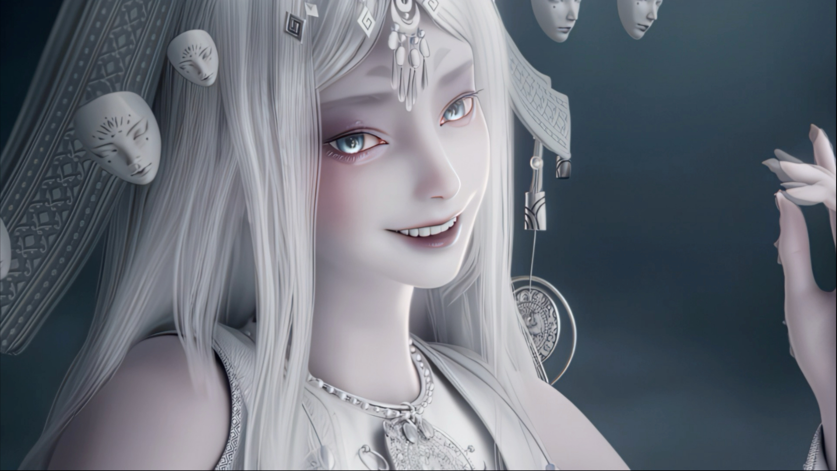 七界梦谭种孟婆这个角色其实就式地府种的一个神明,现实生活中大家在提起孟婆的时候,首先想到的就是孟婆在地府中所熬制的孟婆汤吧,而游戏中的孟婆的这一点和神话故事中对于孟婆的描述并没有太打的区别,孟婆只要共组就是熬制孟婆汤,让路过的亡魂喝了孟婆汤以后还重新投胎,游戏中从孟婆的形象设计上来看到,其外形设计和民俗文化中对于孟婆的描述还是比较贴合的。孟婆在七界梦谭中的穿着的服装就是比较传统的中式古风衣服了,一头银白色的头发上佩戴着极为华丽的头冠,最有特点的就是孟婆所佩戴的头冠上有着很多的面具饰品,这些面具也彰显出了孟婆身为神明的神秘感,而她所穿着的古典衣服上加入了少数民怨的元素,脖子上还佩戴者苗族特有的银质项圈,如此多的少数民族元素都增添来孟婆的神秘。