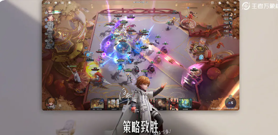 游戏比较主要的亮点就在于针对王者IP的潮流化重新塑造。英雄们不会局限于古风峡谷,而是化身为现代角色,例如有王昭君,李白,孙尚香。建模还会保留英雄的核心特征,同时又会在原本的基础上融入现代潮流美学。技能特效可以延续王者高品质的水准,吕布可以全屏击飞,棋盘上就可以呈现出比较有冲击力的视觉效果,让IP粉丝就能够找到熟悉的感觉。场景设计主要是以立体棋盘作为核心,支持视觉旋转,部分的地图还会有地形交互。