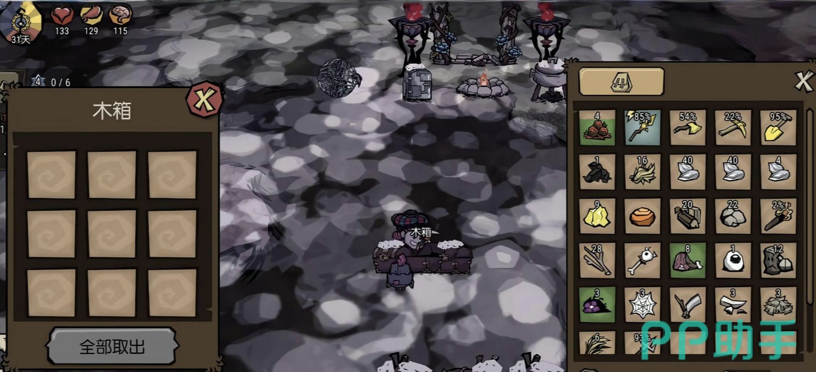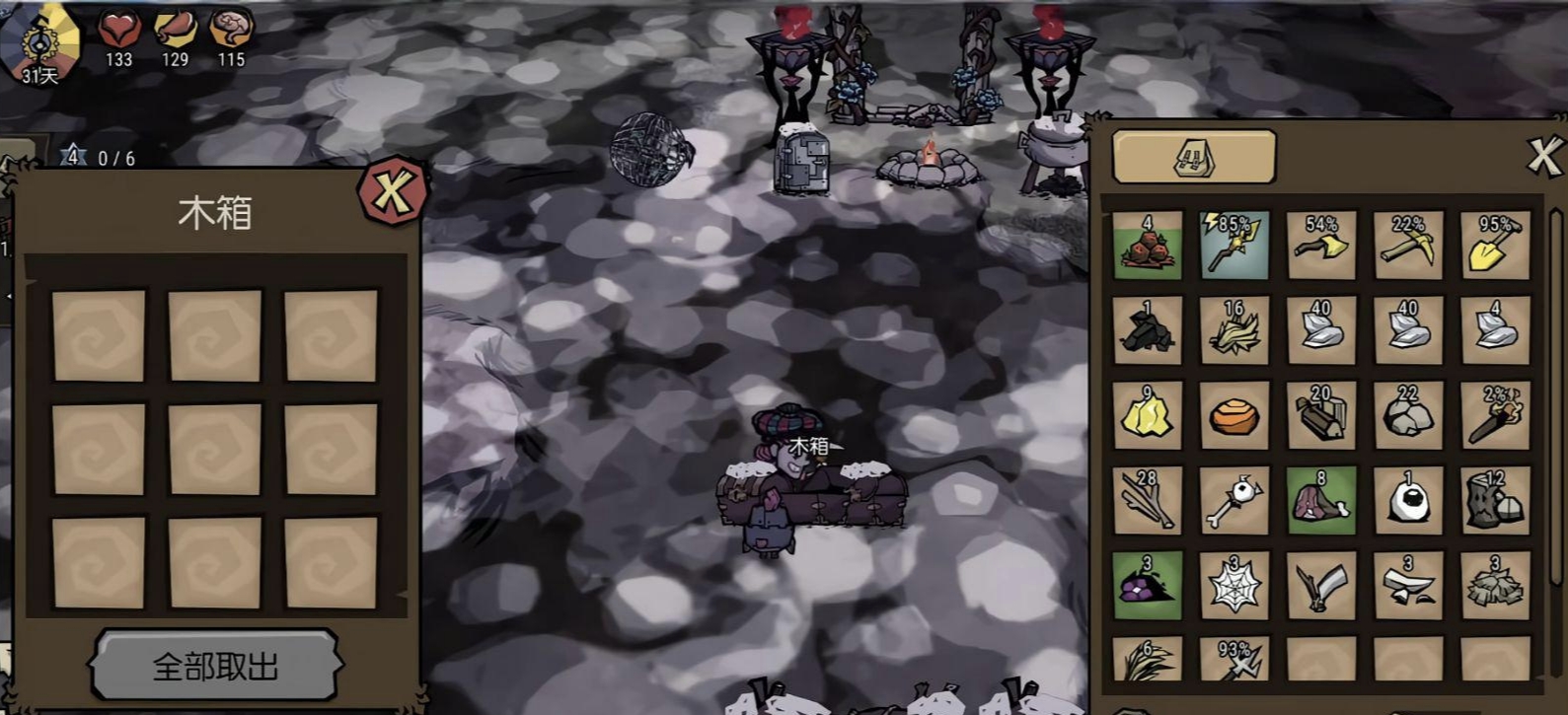 因为这种药水拥有夜视的奇妙功能,玩家在游戏前期的时候使用这个角色,可以很快的适应各个场景,而且还不必惧怕黑夜野兽带来的攻击,帮助玩家更快适应畅玩不同场景的游戏规则和玩法,毕竟这个角色的特质功效较为广泛。除此之外,玩家需要保证角色的三维值数,也就是生命值,饥饿值,理智值,保障这些值数处于健康的状态,常常需要食物和休息也就是睡眠,还有药物。