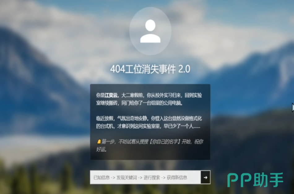 但当你拿到这台电脑之后,你就会发现事情并不如你想象的这么简单。打开电脑后,你发现他的微信和邮箱都没有退出,因此你将会收到来自其他NPC给你发送的消息。而从这些信息里,你发现他失踪的原因绝对不是学业压力这么简单,而这位同门目前的处境也绝对不安全,因此你不仅要小心翼翼的应付同门和老师,配合他们继续完成实验,还要在不被发现的情况下,从收到的零散信息中拼凑出整个事件的真相,并且寻找到这名同门目前的真实位置,帮助他逃出生天。