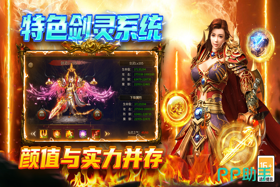 角色养成方面,剑灵系统为免费解锁内容,配合开天斩、逐日剑法等开局即赠的核心技能,大幅优化单人清怪效率。整体成长线设计兼顾深度与易用性,适合偏好快节奏传奇玩法的各类用户群体。