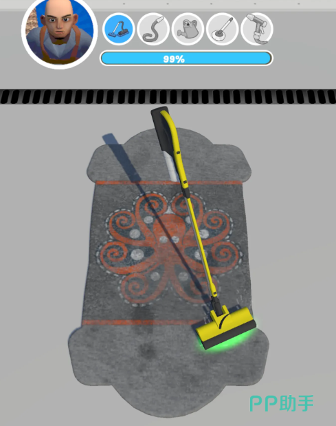 游戏中配备多类型清洁装备:高功率吸尘装置可快速吸附浮尘碎屑;活性清洁剂对咖啡渍、油斑等有机污渍具备强效分解能力;不同硬度刷头适配绒面、短毛、混纺等多种地毯材质。所有工具均基于真实物理引擎建模,点击与滑动操作即可触发对应力学反馈,实现“所见即所得”的清洁反馈效果。