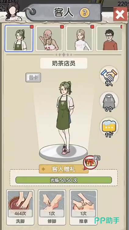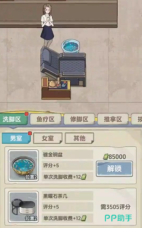 游戏深度还原线下足疗门店运营模型:需平衡顾客满意度、员工工作效率与资金周转节奏;通过处理突发状况(如客户投诉、设备故障、卫生检查)积累口碑与营收;逐步拓展店铺面积、升级洗脚池、按摩床等硬件设施;并按阶段解锁修脚、鱼疗、推拿按摩等增值服务模块。