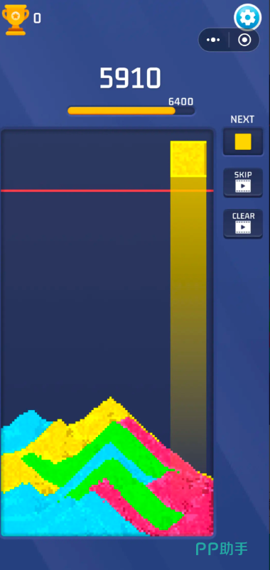 核心消除规则围绕“横向连通”展开:当任意一种颜色的流沙成功构建起贯穿画面左右两侧的连续路径时,该路径上所有相连的同色单元将同步消失,并触发连锁坍塌效应,显著提升单次得分效率。该机制跳脱出传统行列对齐限制,赋予每局操作更强的自由度与策略纵深。