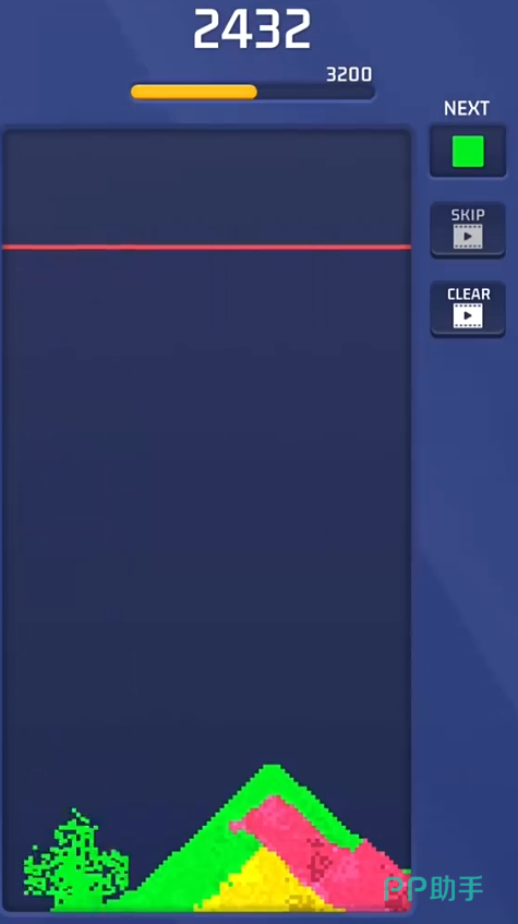区别于静态堆叠,本作强调空间流动性与状态持续演化。每个方块落地后并非固定形态,而是转化为具备物理特性的流体单元,其蔓延方向受邻近地形、已有沙层高度及颜色层级影响。玩家必须提前规划整体结构走向,确保同色流沙能形成从左边界贯通至右边界的有效通路。