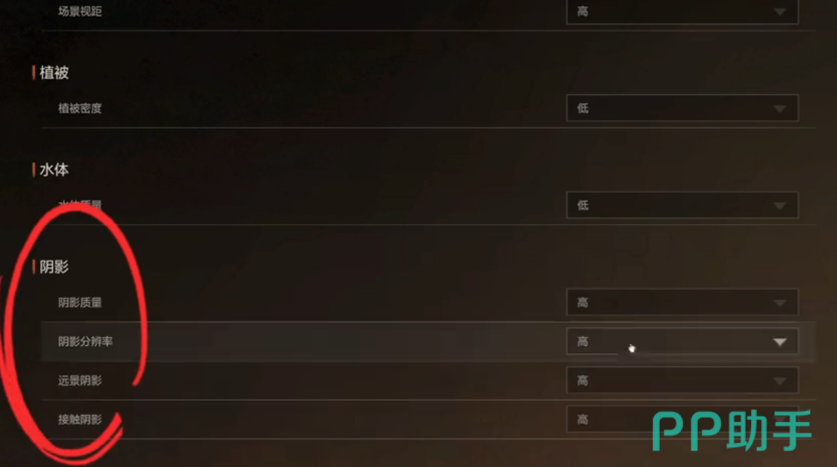 场景视距我们拉到“高”,能让我们更加的画面看的更远,敌人与物资的渲染距离也会更远,非常方便我们搜寻物资,提前发现敌人。植被密度直接调成低,毕竟谁也不想在大草原上走着走着,就被躲在草丛里的敌人阴掉,低植被密度也能更方便我们依靠地形差,打敌人一个猝不及防,要不然草坪的渲染太占视野了!阴影设置看似是小问题,但却非常影响我们的整体游戏流畅度,毕竟光阴渲染一直是很多游戏的噩梦。这里我们把阴影设置全调成最低,能极大幅度的解放我们的设备负载,有效缓解我们在大场景中的卡顿现象。