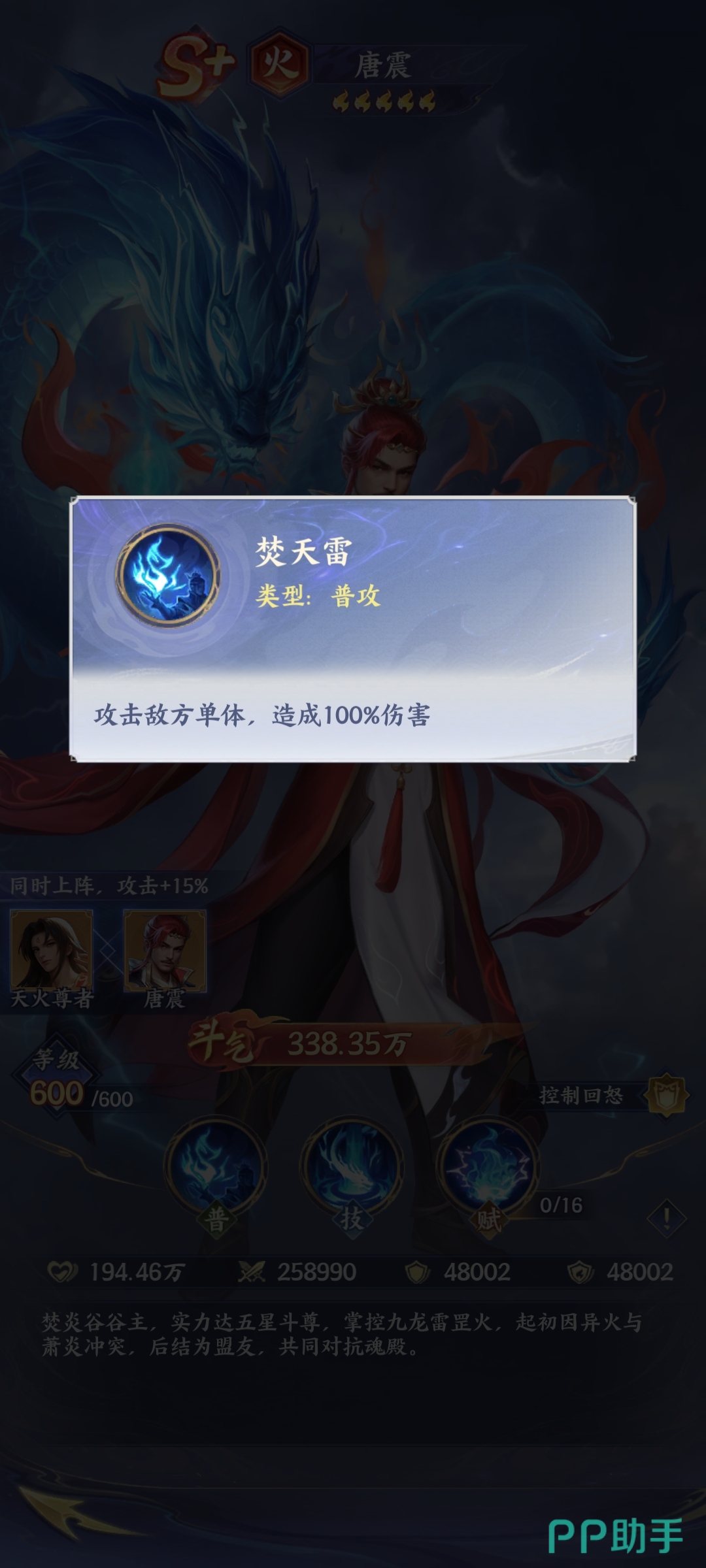 斗破苍穹唐震搭配就分享到这里,其实在整个游戏当中,唐震的实力是比较强悍的,但是玩家也需要将它升级到15星,他才能够独立激活跟天火尊者的有效羁绊。在资源分配方面的话,玩家应该优先选择攻击跟暴击属性,其次才是生命跟防御。
