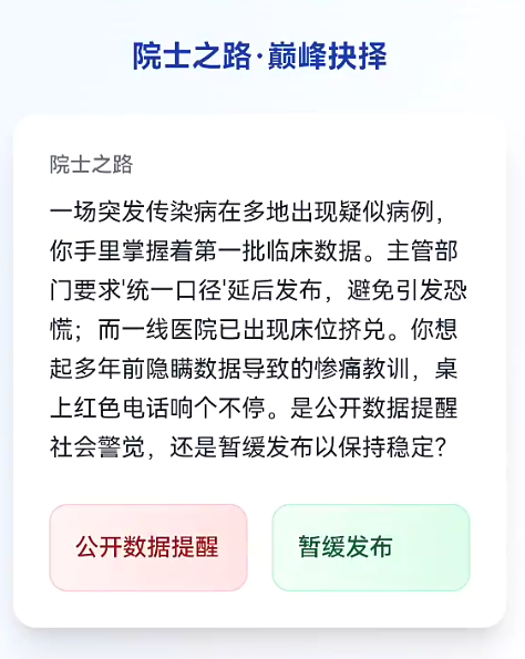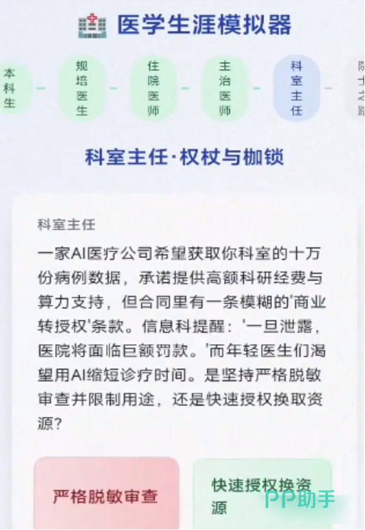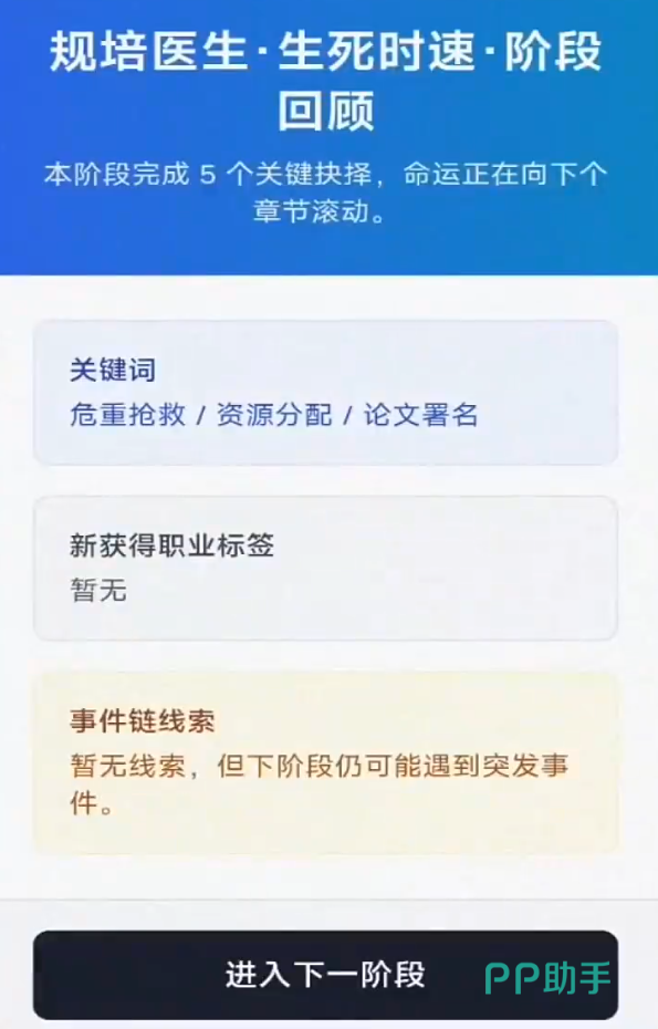 在游戏中,身为初出茅庐的医学毕业生玩家会面临很多艰难的抉择,这个职业面对的选择可能是关乎于一个生命,玩家每一次的抉择都会很为难。医学作为一个职业,还有职业上升上的压力,面对职场也要有一定的抗压能力。
