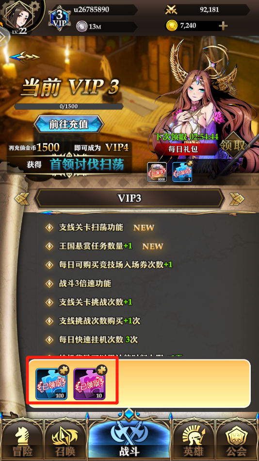 (2)限定信物:限定信物是RMB道具,只能通过VIP等级换取。