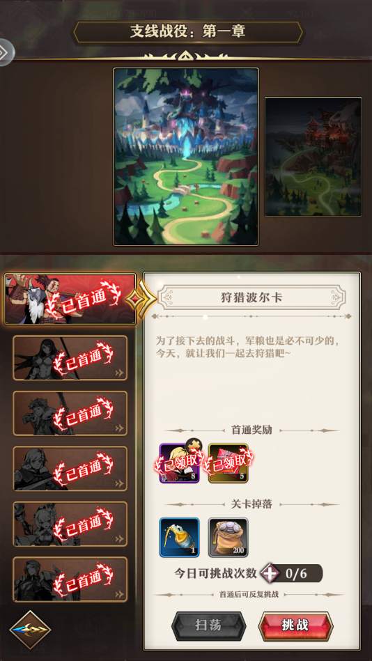 1、支线战役:玩家每完整通关一张挑战章节,就可以挑战全新的支线战役,每一章的支线战役有六个关卡,全部完成可以得到50个指定游戏的指定信物,这个是新老完毕必完成的副本。