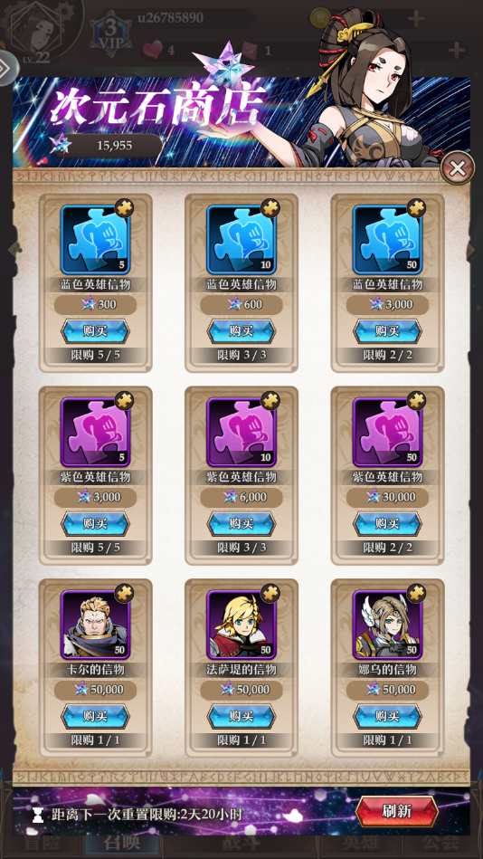 4、英雄商店:英雄商店也可以直接兑换英雄信物,不过兑换道具是通过分解没有用的角色来换取的,大家平时要多参与抽卡等获取英雄的活动。