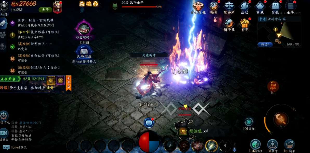 前期发育阶段,建议优先将技能点集中于【召唤神兽】与【灵魂火符】。其中,召唤神兽提供稳定承伤单位,有效分担角色压力;灵魂火符则承担主力远程伤害输出,二者协同构建“神兽抗怪—火符压血—循环清场”的高效挂机节奏,完美适配日常任务、低阶副本及小怪群刷场景。