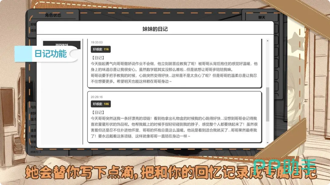 平时还会把和大家之间的记忆制作成专属日记,真正做到了让大家的回忆都保存了下来,可以时时刻刻翻阅查看,与其说是一款简单的模拟作品,不如说是陪伴大家成长的虚拟对象。