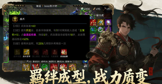 在玩法的设计上,每一次的探索都是全新的体验。怪物组合以及奇遇事件都会随机生成,玩家在闯关的过程中就可以自由的选择路线,然后去拾取不一样的装备,搭配专属的羁绊效果。武将系统更是游戏的核心亮点,会收录三国历史上百位的知名武将,例如赵云,还有吕布,此外还有诸葛亮。武将的人设都会贴合历史的形象,技能会还原人物的特色,例如吕布的无双乱舞。更重要的是游戏还会有无废将的理念,所有的武将都可以通过培养的方法去提升等级。