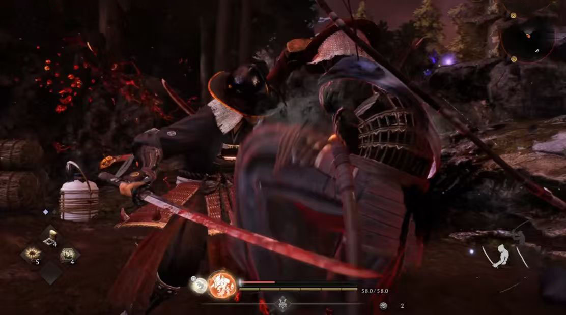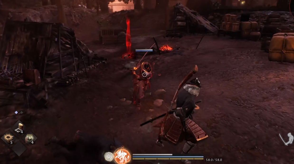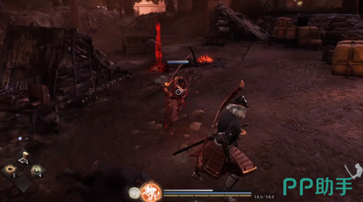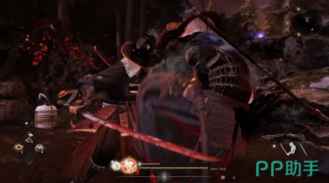 实战准备方面,建议携带不低于20瓶红药与15瓶蓝药,以应对不同强度尸狂带来的持续压制压力。武器选择上,优先装配具备高精气削减(削精)属性的装备,例如“雷切·改”或“八尺琼勾玉”类武器,可高效触发处决判定窗口;战斗风格推荐忍者流派,其核心优势在于“残心”机制可大幅缩短精力恢复时间,配合高频位移与翻滚判定,显著提升容错率。进入战斗后,切忌贸然强攻,应先观察3—5秒,识别其精力槽耗尽时出现的红色提示圈,再择机突进;当尸狂周身泛起明显红光,即代表其即将释放高伤害蓄力技,此时需立即使用“转心”切换姿态打断动作,或通过侧向翻滚脱离判定范围。