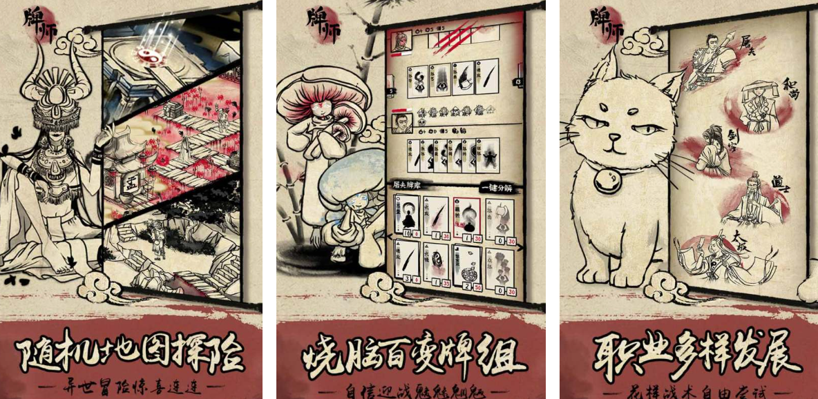 以水墨国风为视觉载体,打造高随机性卡组构筑体验。玩家在迷宫探索过程中不断遭遇未知事件、获取遗物、调整卡组结构,形成动态演进的成长路径。面对高难度妖物挑战时,卡牌组合的协同效率、关键抽牌时机的把控、血量管理与爆发节奏的平衡,共同决定了通关可能性。在极限残血状态下打出逆转连招所带来的紧张感与成就感,正是本作最核心的体验锚点。