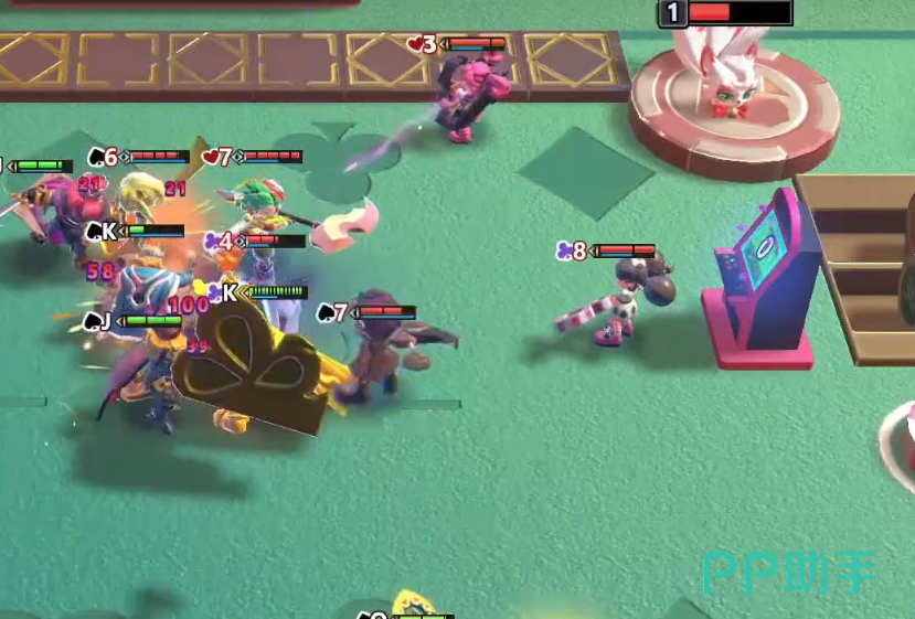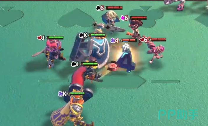 本作以策略对抗为核心,最大亮点在于将传统扑克牌体系深度植入自走棋规则中。角色卡牌均按花色(黑桃、红心、梅花、方块)与数字编号设计,不同花色之间可触发阵营协同效果,大幅提升阵容搭配自由度与战术延展性。