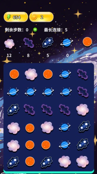 以星空主题为背景的连线消除类作品,关卡目标明确,通过有限步数完成指定消除任务即可通关。整体节奏舒缓,界面简洁清新,配合柔和音效与动态星轨视觉元素,营造出沉浸式放松氛围。游戏强调正向反馈与轻度思考,适合碎片时间体验,具备较强的情绪疗愈属性。