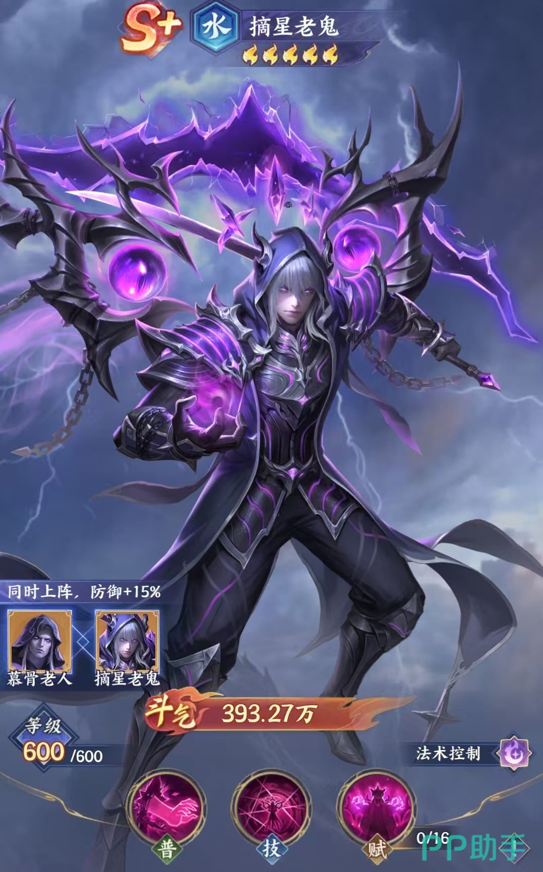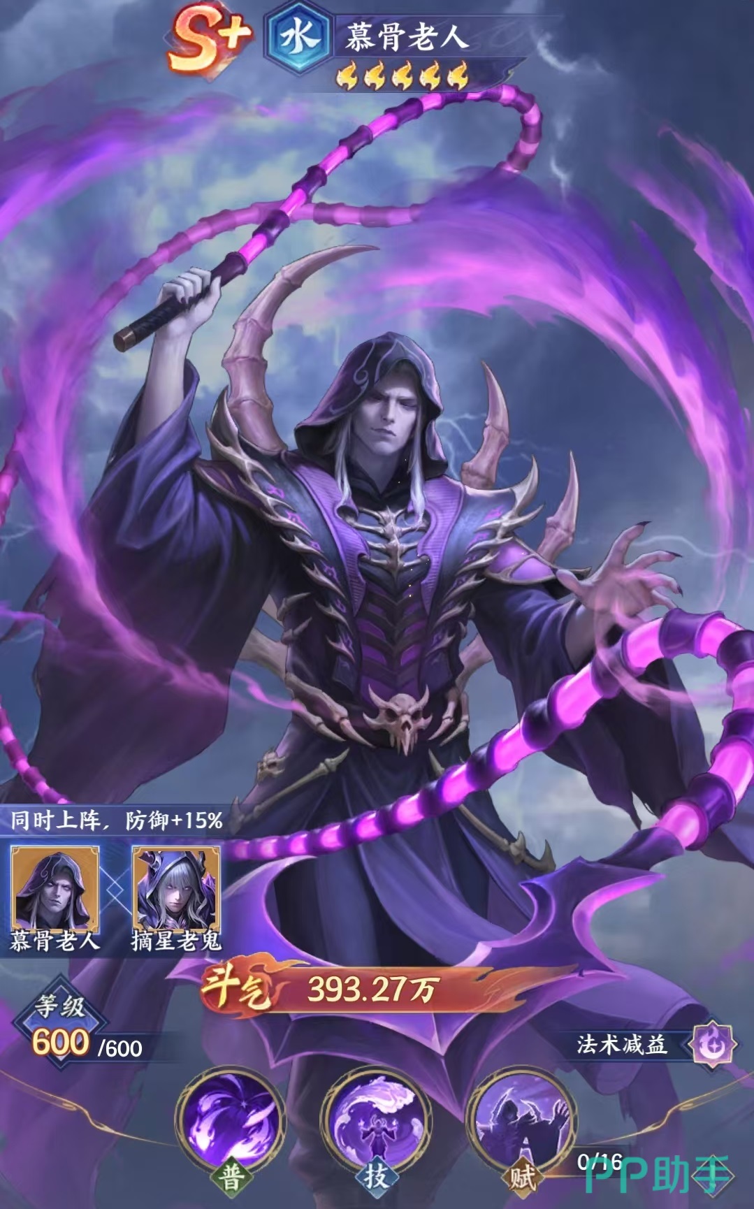 今天为大家深度解析《斗破苍穹》官方正版手游中极具战略价值的水系S+级斗者——摘星老鬼。该角色虽在原著中以诡谲手段闻名,在游戏中则被精准定位为高阶法术控制型核心,其机制设计兼顾群体压制与怒气干扰,是中后期阵容构建的关键支点。