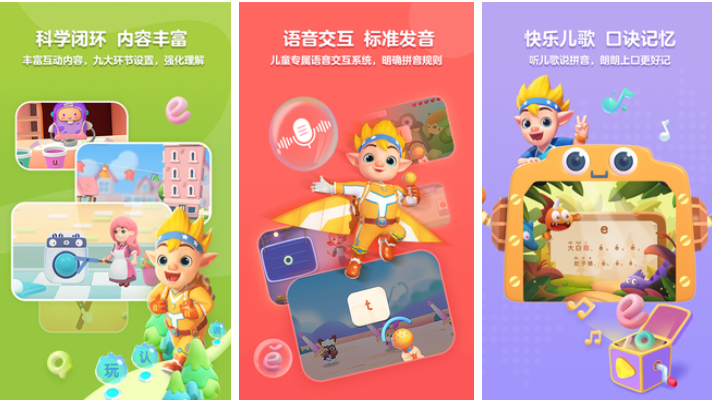基于国家语委拼音教学标准研发的系统化学习产品。采用“听—说—读—写”四步闭环设计,每个声母韵母均配标准示范音频与口型动画。儿歌记忆法贯穿全程,如“张大嘴巴ɑ ɑ ɑ”,辅以情景化拼读练习(如“bā bā bā,爸爸回家啦”),强化音形义关联。