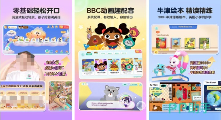 面向零基础学龄前儿童的英语启蒙应用。内置牛津树同源分级绘本体系,每册配备英音原声朗读(伦敦腔)、重点词汇点读、互动问答三重学习路径。动画角色全程引导,高频复现核心句型(如“This is a cat”),通过可理解性输入建立初步语感。