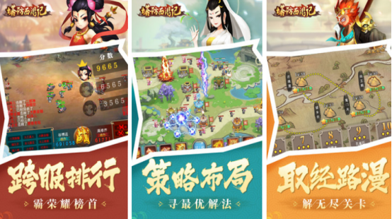 本作采用清新明快的卡通美术风格,全景呈现花果山、流沙河、火焰山等原著标志性场景。区别于传统RPG,《塔防西游记》将西行之路转化为策略塔防战场:玩家需在固定路线布设孙悟空、二郎神、哪吒等角色卡牌,利用其技能特性拦截妖兵、抵御魔王Boss。关卡设计融合昼夜机制与随机事件,配合电影级特效演出,带来兼具沉浸感与操作爽感的闯关体验。