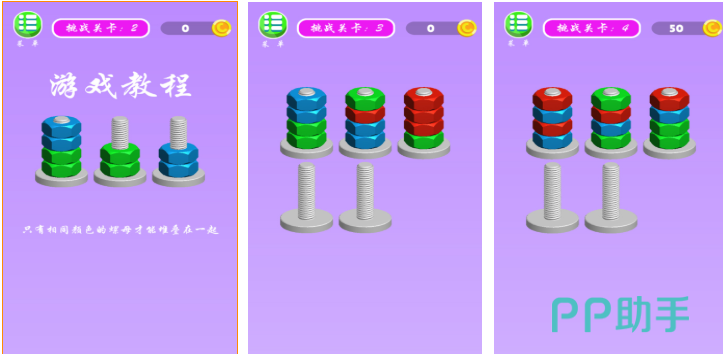 该游戏聚焦颜色分辨能力训练,要求玩家依据色相将散落的螺母与螺栓进行归类配对。初始阶段设有分步教学引导,后续关卡逐步引入相近色干扰、动态背景及时间压力等进阶要素。整体建模精细,金属质感与色彩纯度表现到位,建议色觉障碍人群谨慎尝试。