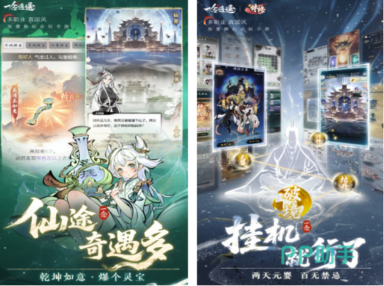 高人气放置修仙代表作,以“五大修行方向”(剑修、体修、符修、丹修、阵修)构建差异化成长框架。挂机系统支持全自动运行,离线收益按时间比例结算;奇遇事件随机触发,涵盖秘境探索、前辈托梦、妖兽围攻等数十种类型。界面采用宋代美学构图,UI动效融入水墨晕染效果,国风沉浸感强烈。