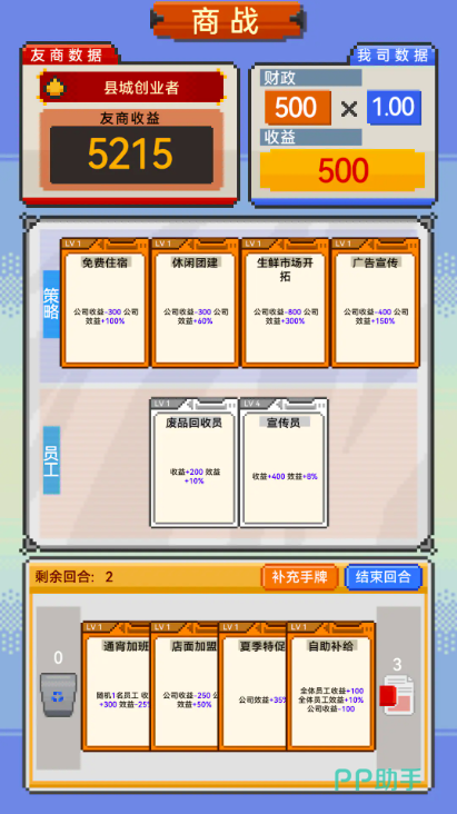 如果你在追求这种商战手游的创意体验,那么解锁IMCEO手游绝对没错,在画面打造上不仅使用了复古像素风,而且还有大量的商战肉鸽玩法融入到了游戏当中,玩家在尽情享受复古画面的同时,也能够在这里打造出极具特色的卡牌阵容组合,内容体验方面再高一个强度,建立起自己的专属商业帝国,就是这么简单。
