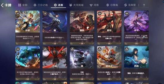 王者荣耀中的几十个英雄给全都以卡牌的方式出现在王者万象棋之中,游戏中的英雄卡牌海有着阵营的划分,比如说大河流域、河洛、三分、日落还等阵营,每一个阵营都有着专属的羁绊以及战斗效果,若是玩家所选择的卡牌都正好处于同一个阵营的话,那就能够在战斗中激活阵营的羁绊以及战斗效果,当然了,玩家也不用为了同阵营的羁绊强行凑英雄,游戏中也是有着没有流派的英雄的,这些英雄使用起来效果也是非常不错的。