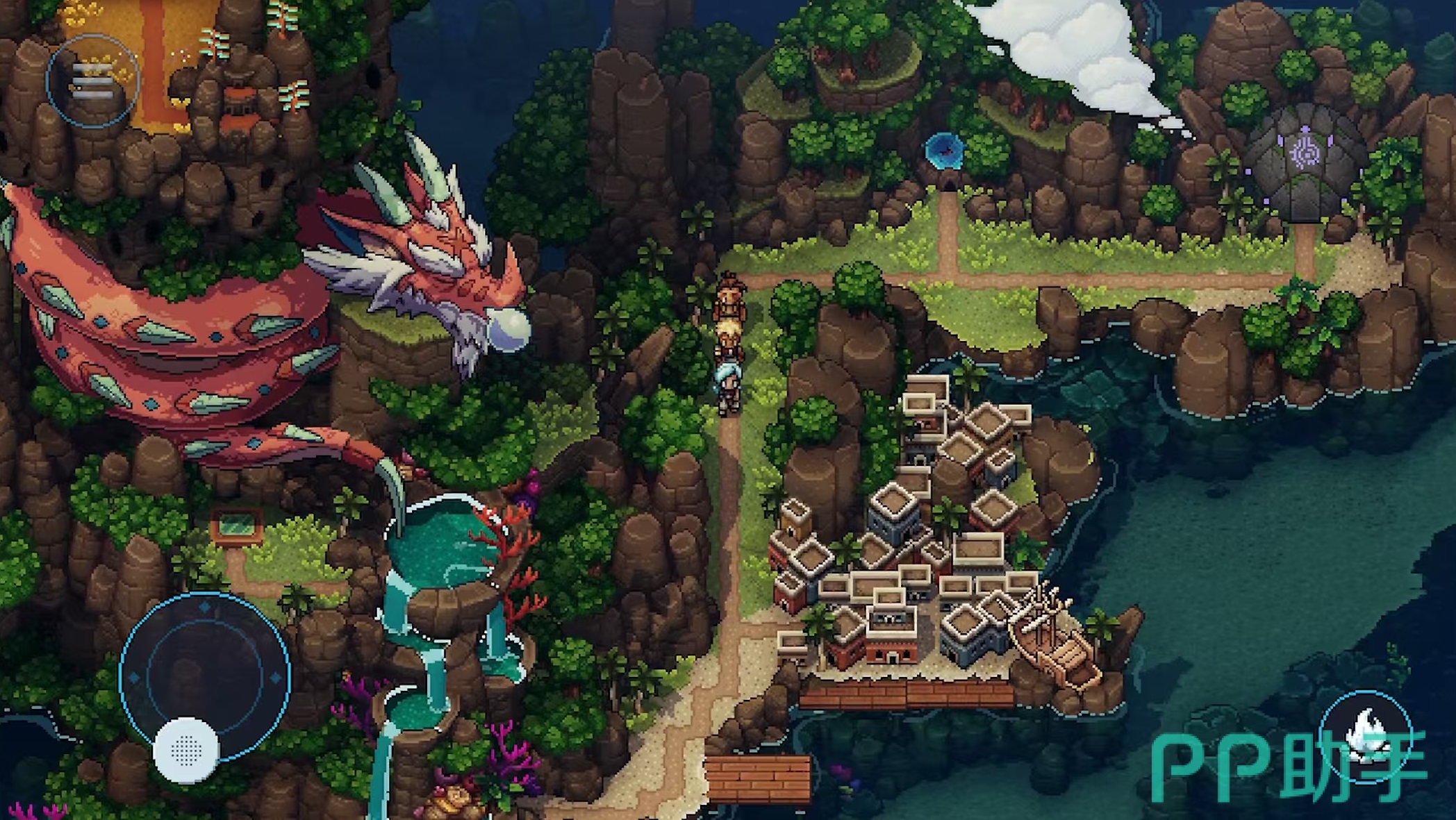 本作采用经典像素美术风格,但在玩法架构上全面升级:战斗系统摒弃传统强制遇敌机制,采用明雷式怪物呈现方式,允许玩家自主选择绕行或接战,大幅提升探索自由度。回合制框架内嵌入“时机判定”机制——玩家需依据敌人动作节奏,精准执行攻击、格挡、闪避等操作;同时引入属性克制破锁逻辑:当敌方施放技能前浮现元素标识时,使用对应属性技能可成功打断施法,并降低其后续抗性;此外,能量积攒系统支持强化普攻与终结技释放,使每场战斗兼具策略性与节奏张力。