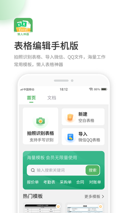 第二款应用程序的产品逻辑是以快速输入和模板创建为核心进行的。在弹出的页面上,会出现一张空白的表单和一个分类的模版,而另一张表单则包含了一些常见的情况,比如:考勤、库存、预算等。手写输入方式可在触摸屏上直接画出表格框,并能自动辨识线的方向,产生行列结构,适用于开会时的快速勾画。语音输入功能可以在当前选择的空格内直接输入文字,让你的双手更加自由,提高了输入的效率。