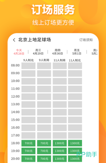 第一个应用的商业重点是针对业余球迷的线下预约和比赛管理。使用者可以利用位置功能找到附近的球场,可以浏览球场的真实图片和历史评分,并可以在线预定球场的闲置时间。预约模块支持战队首页的建立,队长可以发布招募信息,临近的队伍将会按照所在的区域和实力进行匹配。
