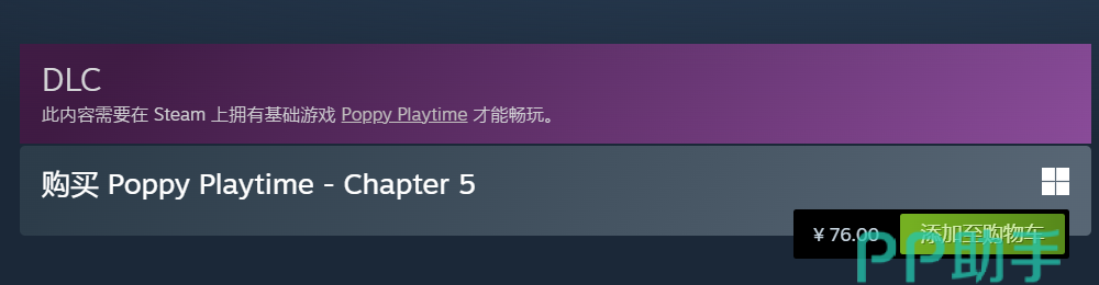 这个游戏比较特殊,是需要玩家先下载好【波比的游戏时间】这款游戏,然后再通过购买不同的章节来开启,其中第5章节单独购买是76元,这也是首发价格。这款游戏的首发没有参与折扣,如果玩家不是马上要玩的话,可以稍微等几天,和前面几个章节打包一起购买,会有打折扣。
