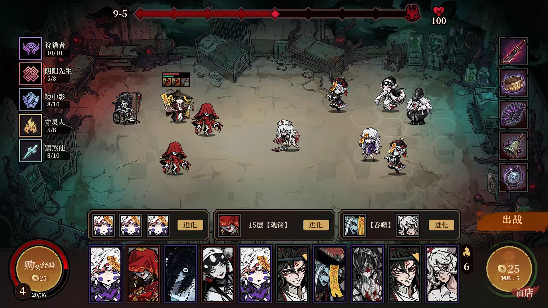 游戏整体美术风格根植于中国传统志怪文化,棋子形象、技能特效、场景构建均深度还原中式恐怖氛围。每位棋子具备明确职业定位与专属羁绊体系,如红衣新娘为典型输出位,可激活“狩猎者”与“镜中镜”双重羁绊。实战中需围绕羁绊组合进行阵容构筑,并兼顾前排承伤、后排输出、控制干扰三类职能的合理配比。