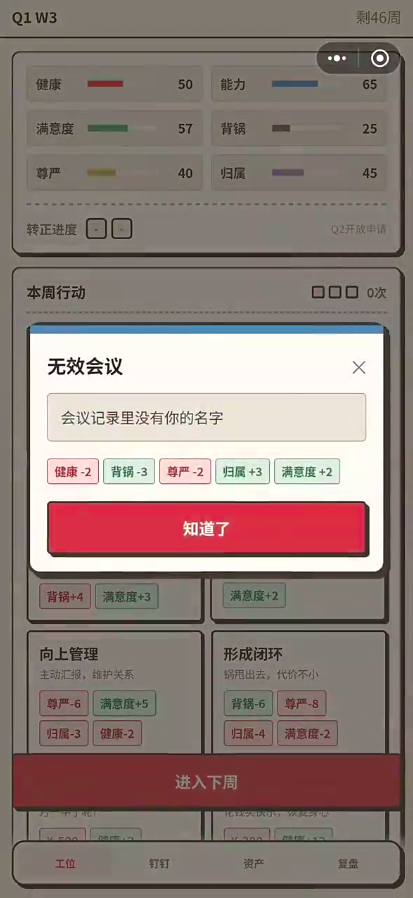 网络热梗也在其中囊括,比如带薪拉屎、无效会议等等,还能在这里带薪摸鱼,体验打工人的独属欢乐,养成玩法趣味多多,你究竟会走向怎样的结局呢?