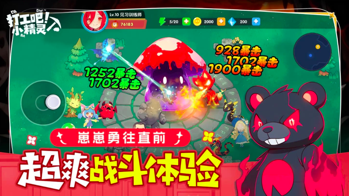 小编首先想和大家分享的是游戏的核心系统——养成收集系统,200+种不同属性,不同功能的可爱打工精灵等待你收集,即使是平民玩家也可以丝滑解锁全图鉴,森林当中隐藏着各种各样的精灵蛋,每只小精灵都可以做到天赋异禀,甜品制作达人、战场不败王者、高速伐木大神都可以在你手中被培养出来,从此开启更加高效的家园建造模式,为你的高分战场表现奠定基础。