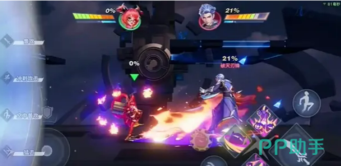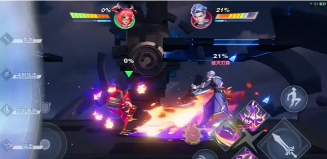 跳跃普攻分三种,直接跳跃普攻、跳跃往上滑普攻,还有跳跃往下滑普攻,三种打法各不一样。小编觉得空中普攻是安琪拉比较值得多用的打法,她在空中的火焰攻击范围挺大,能覆盖到很多区域,尤其是跳跃下普攻,覆盖范围算是比较可观的,多在空中和对手拉扯是不错的选择。长按普攻键蓄力可以打出猛击,安琪拉的猛击距离比一般英雄远,但击退、击飞这些效果就差了一些,更适合在中等距离慢慢消耗对手的血量,不太适合靠这个来一击制敌。