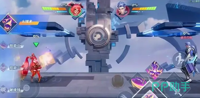 技能方面,火球术点按可以直接射出火球,长按的话,可以拖动位置,在指定地点生成火球,火球数量会随时间积累,上限是五个,五个全部打出去能打出40%的击飞值,效果相当可观。另外这个技能可以在空中蓄力瞄准,虽然操作难度高了一些,但对手在地面上,很难预判这波攻击从哪来,防起来会比较被动。