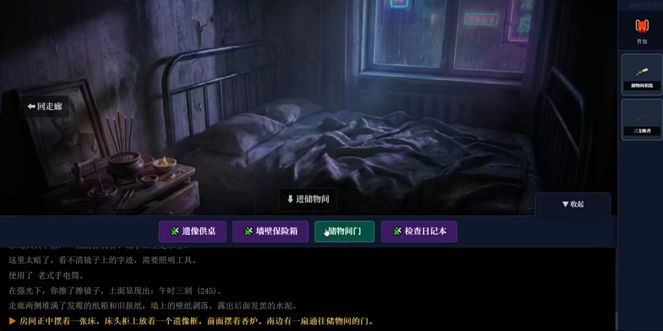 这款游戏是属于中式微恐怖加轻度点触解谜类型的手游,这里没有重度的恐怖元素,所以不用担心被吓到,但是也有十足的民族氛围,设计的恰到好处。游戏采用了第一人称探索方式,采用纯点击操作模式,逐个调查房间、家具、物品等。通过收集道具查看线索等方式来往前推进剧情,没有复杂的操作,手机单手就能够玩。