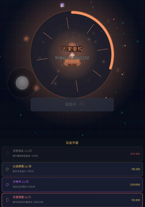 作为放置类游戏,到时候我们不用高强度操作,通过挂机即可实现修为增长,适配玩家碎片化时间体验,兼顾休闲与成长,而且多元养成系统,让各位可升级灵根、感悟心法、修炼分神术,通过科技装备强化自身。