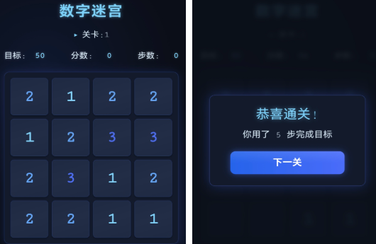 相当有趣的一款解谜类型游戏,数字和迷宫就会结合在一起,有较强的逻辑思维能力。这款游戏会将数字运算,还有空间思维全部都放在一起,可以给小伙伴们带来多样性的挑战。在探索关卡时,把两个不同的数字放在一起就可以合并,而在合并之后还能得到对应的分数,要想完成关卡,那别忘记要通过精心的布局。