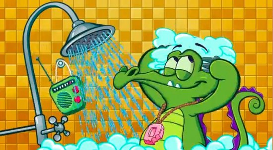 《鳄鱼小顽皮爱洗澡》是靠滑稽和物理效果实现的。本游戏以一只爱洗澡的小鳄鱼为主角,玩家要做的就是挖土、引水,使清水能够流进浴缸。听上去很简单,但是由于地形的设计以及机关的设置,所以充满了很多挑战。水流受重力作用会被分流或者蒸发,也会和其它液体发生改变。每一关就是一个小实验,要观察也要尝试。游戏的画面很卡通可爱,小鳄鱼洗澡时的表情常常让人忍俊不禁。