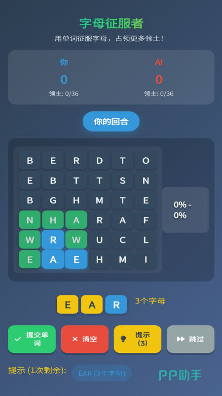 本作是一款字母拼写对战手游,玩家需要在限定的时间之内,快速识别,并拼写出屏幕上的字母组合,和电脑进行实时的战斗。游戏以更准确和更块为主要目标,融合了竞技和学习,十分考验玩家的反应速度和词汇量。战斗采用回合制,随着游戏不断推进,难度也会逐渐提升。