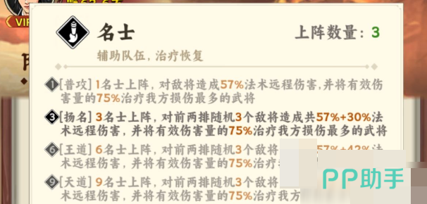 需注意的是,“攻防合一”并非指单体全能。实际战斗中,名士的普通攻击仅造成57%的法术伤害(含远程判定),而高达75%的伤害数值会同步转化为自身或友方单位的治疗量。因此,纯名士阵容需满足最低人数门槛:至少上阵4位名士,方可激活基础羁绊,使全队法术伤害提升30%;若达成6名士齐出,则可触发“王道羁绊”,法术伤害进一步提升至+42%,同时实现范围伤害与群体续航的双重压制效果。